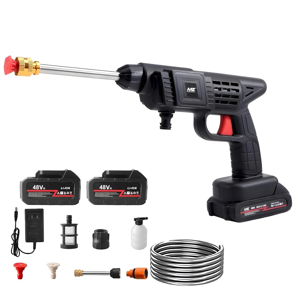 The portable spray gun is designed for efficient and precise application of paint and coatings. Its lightweight construction enhances maneuverability, allowing users to reach difficult areas with ease. Ideal for both professional and DIY projects, this tool ensures consistent coverage and reduced application time, improving overall productivity.